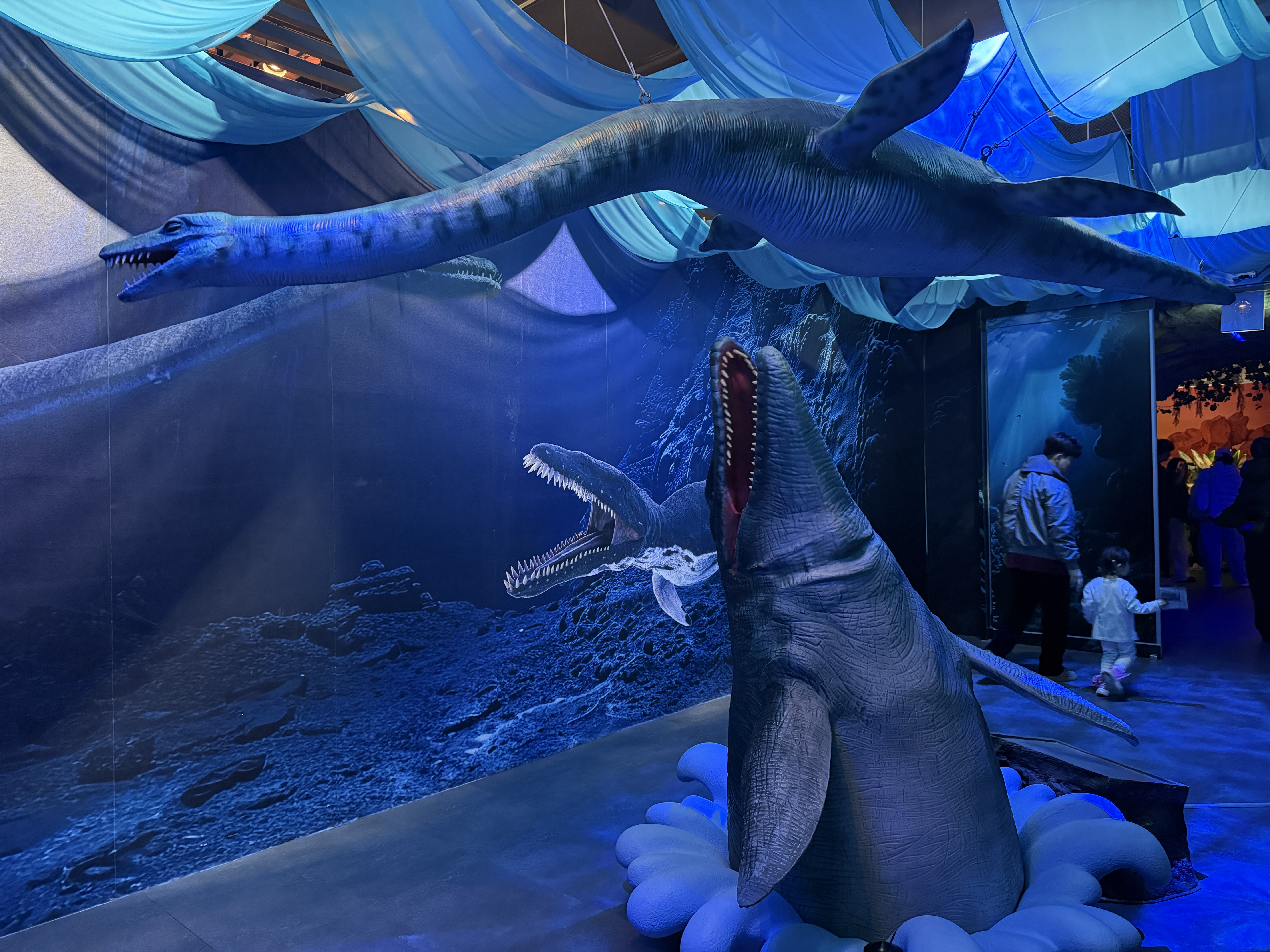 특히 입구에 들어서자마자 맞이해주는 엘라스모사우루스와 모사사우루스는 다른 곳에서 보기 힘든 공룡들이라 아이들에겐 인기 만점일 수밖에 없습니다.
